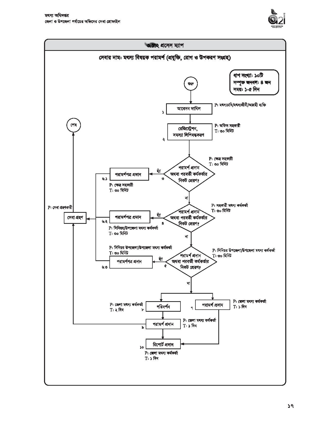 | ১০ | মৎস্য সম্পদ সংরক্ষণে ও উন্নয়নের মাধ্যমে কর্মসংস্থান ও দারিদ্র বিমোচনের সহায়তা প্রদান | মৎস্যচাষী/মৎস্যজীবী | ঐ | বিনামূল্যে | |